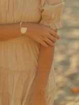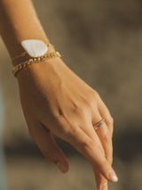 This bracelet is quite lovely. It features a large white flat shell and gorgeous link chain. Wears beautifully by itself or with one or more of our everyday chain bracelets available here.