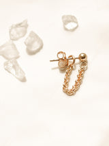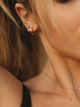 So simple, yet so stated. These earrings can snug your ear lobe, hang just below or a little bit longer. Our favorite look is to pair two of the same sizes together for a double stack of chain. To attach, hook the lower ring to the back of the lobe before attaching clutch.