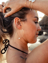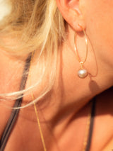 This hoop style is simply gorgeous and effortless to wear. Paired with an elegant, natural mauve-toned pearl that is perfect for dressing up or down. P.S. The pearl is removable, giving you the option to wear a sleek gold hoop whenever you please.