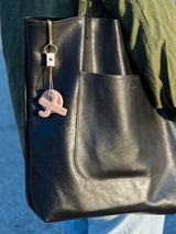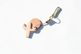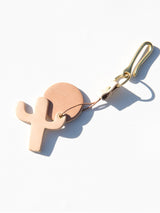 This stylish key fob slips easily onto the brim of your bag or belt. Features a leather cacti and sun. Both the leather and brass will change color over time.