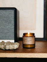 Maker Note: Our candles are simple: they're all made with 100% domestically grown soy wax, fine fragrance oils, and cotton-core wicks. The fragrances we use are paraben-free, phthalate-free, and never (ever) tested on animals.