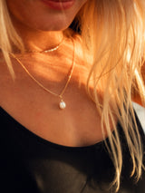 It's timeless, it's beautiful and it goes with any attire - bikinis to bridesmaids. This necklace features a traditional oval pearl and a single gold bead, wire wrapped together and paired with a classic cable chain.