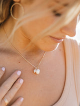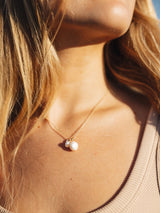 Two organic freshwater pearls in one necklace. One big, one small, and one tiny ocean-colored bead all on a gorgeous fine chain.