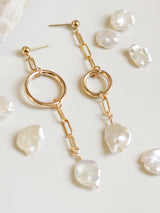 Earrings fit for a queen featuring a beautiful set of Keshi pearls. In this design, the earrings are not identical. Both sides differs slightly from the other creating lovely, unique pair of earrings. Features a ball-post earring style.