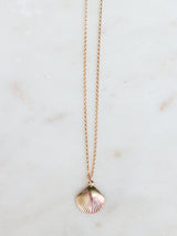 This dainty scallop shell necklace is everything lovely. It's paired with a gorgeous rolo chain and goes perfectly with any of our Everyday Layering Chains and a white tee or bikini.
