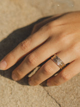 Shine bright like a star...burst. Pairs great with our stacker or twist rings. This design is thin and works best with one or two surrounding rings for support. Totally fine to wear by itself, maybe just avoid the heavy lifting.